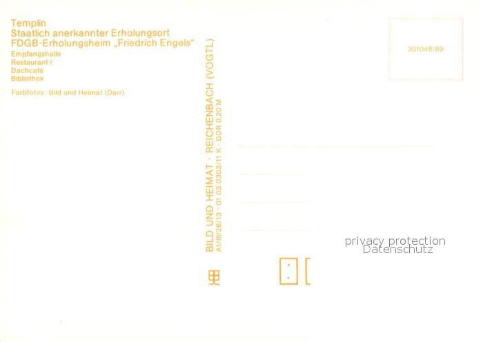 73616522 Templin FDGB Erholungsheim Friedrich Engels Empfangshalle Restaurant I Dachcafe Bibliothek postalisch nicht gelaufen Erhaltung siehe scans [WerneD78] KatCode: 11110012073572