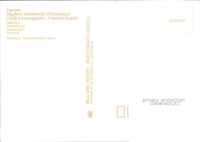72458841 Templin FDGB Erholungsheim Friedrich Engels postalisch nicht gelaufen Erhaltung siehe scans KatCode: 11110012073572