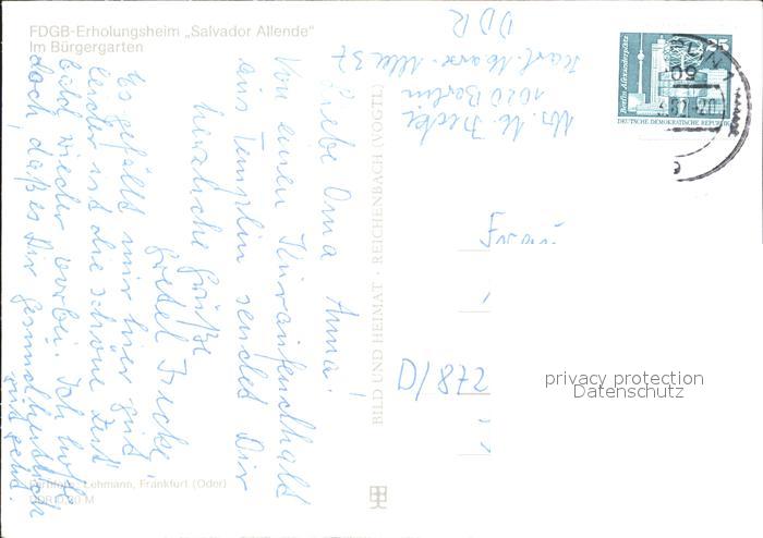 72255522 alte Postkarte Templin FDGB Erholungsheim Salvador Allende Buergergarten Fontaene postalisch gelaufen Erhaltung siehe scans KatCode: 11110012073572