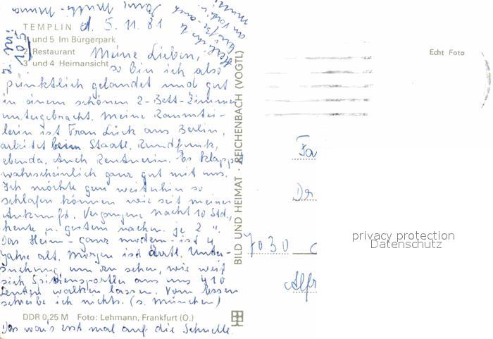 72642621 alte Postkarte Templin FDGB Erholungsheim Salvador Allende Restaurant Heimansicht Park postalisch gelaufen Erhaltung siehe scans [WerneD78] KatCode: 11110012073572