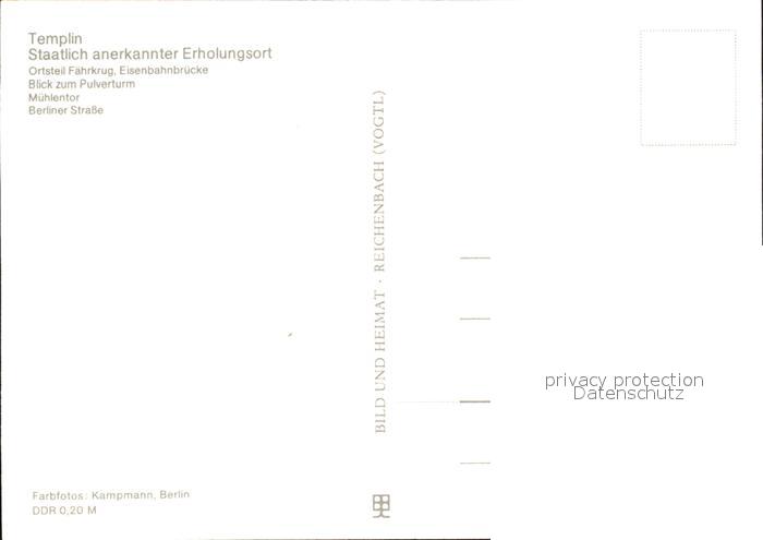 72550333 Templin F?hrkrug Eisenbahnbr?cke Pulverturm M?hlentor postalisch nicht gelaufen Erhaltung siehe scans [KathaD79] KatCode: 11110012073572