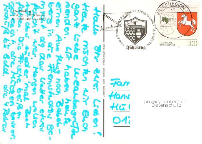 73736383 alte Postkarte Templin Hotel Faehrkrug Terrasse Faehre Theke postalisch gelaufen Erhaltung siehe scans [WerneD78] KatCode: 11110012073572