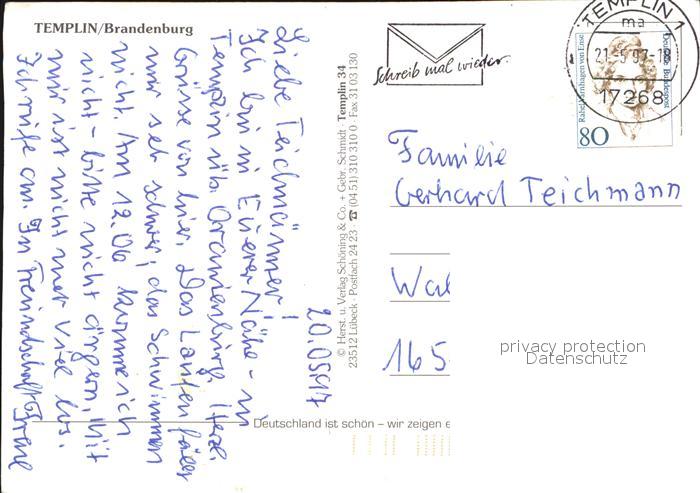 72580695 alte Postkarte Templin Luftaufnahme Brandenburg postalisch gelaufen Erhaltung siehe scans [KathaD79] KatCode: 11110012073572
