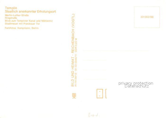73600050 Templin Martin Luther Strasse Fachwerkhaeuser Ringstrasse Templiner Kanal Muehlentor Stadtmauer Prenzlauer Tor postalisch nicht gelaufen Erhaltung siehe scans [FriedD77] KatCode: 11110012073572