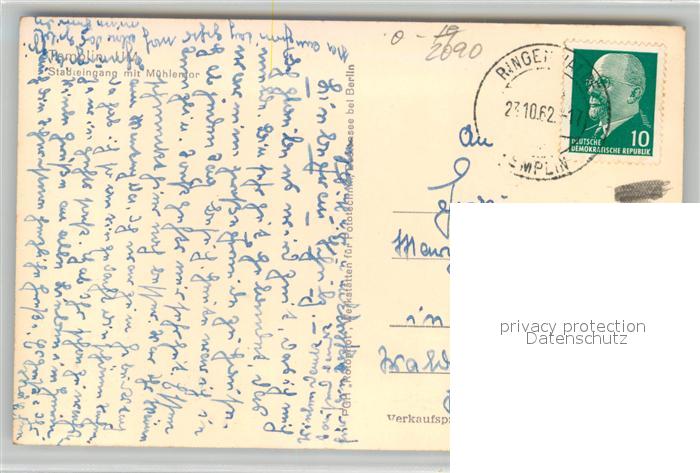 43499486 alte Postkarte Templin M?hlentor postalisch gelaufen Erhaltung siehe scans [LiesaD40] KatCode: 11110012073572