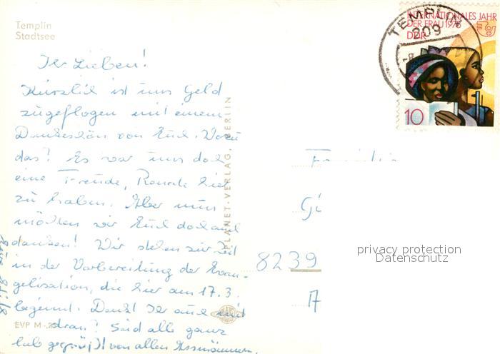 72963000 alte Postkarte Templin mit Stadtsee postalisch gelaufen Erhaltung siehe scans [LiesaD40] KatCode: 11110012073572