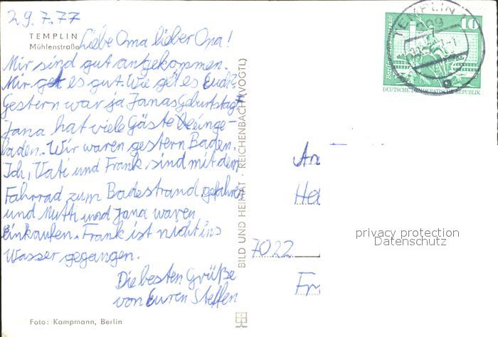 72315543 alte Postkarte Templin Muehlenstrassen postalisch gelaufen Erhaltung siehe scans KatCode: 11110012073572