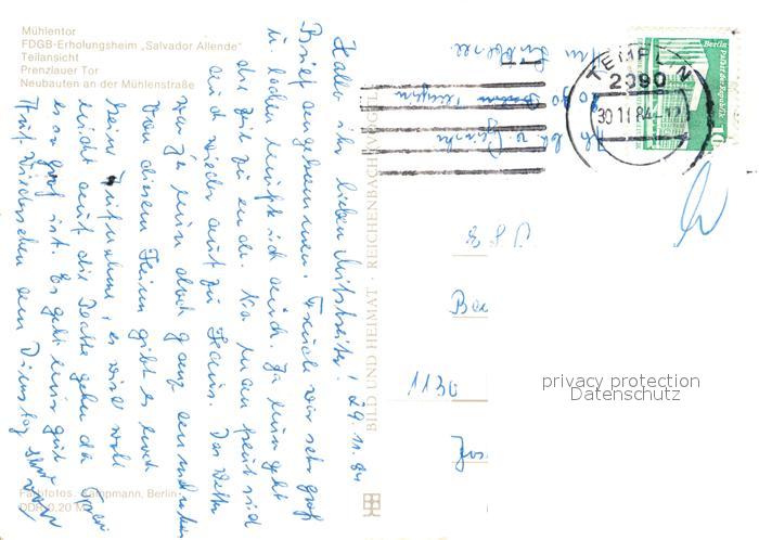 73600170 alte Postkarte Templin Muehlentor FDGB Erholungsheim Salvador Allende Prenzlauer Tor Neubauten Muehlenstrasse postalisch gelaufen Erhaltung siehe scans [FriedD77] KatCode: 11110012073572