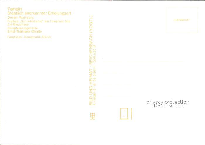 72034710 Templin OT Weinberg Freibad Schinderkuhle Templiner See Gleuensee Dampferanlegestelle Thaelmann Str postalisch nicht gelaufen Erhaltung siehe scans KatCode: 11110012073572
