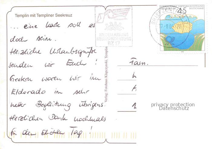 74023211 alte Postkarte Templin Panorama Templiner Seekreuz postalisch gelaufen Fliegeraufnahme Erhaltung siehe scans [FriedD77] KatCode: 11110012073572