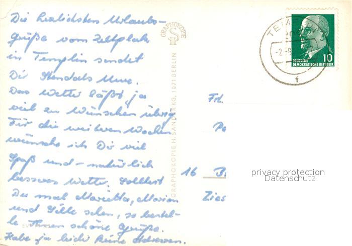 73037325 alte Postkarte Templin Rathaus Berliner Tor FDGB Erholungsheim Aufbau Haus I Schultor postalisch gelaufen Erhaltung siehe scans [KathaD81] KatCode: 11110012073572