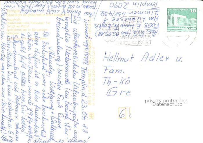 72393539 alte Postkarte Templin Ringstrasse Stadtmauer Schleuse postalisch gelaufen Erhaltung siehe scans KatCode: 11110012073572