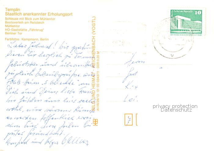 73088715 alte Postkarte Templin Schleuse Muehlentor HO Gaststaette Faehrkrug Berliner Tor postalisch gelaufen Erhaltung siehe scans [KathaD81] KatCode: 11110012073572