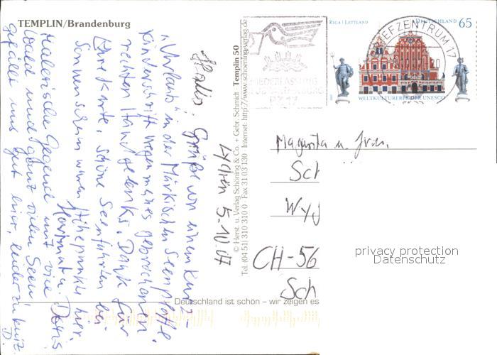 72565987 alte Postkarte Templin Stadttor Kirche Rathaus Hafen Marktplatz postalisch gelaufen Erhaltung siehe scans [WerneD78] KatCode: 11110012073572