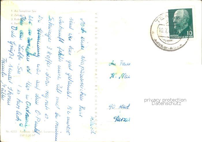 72419029 alte Postkarte Templin Templiner See Zeltplatz Rathaus Berliner Tor postalisch gelaufen Erhaltung siehe scans KatCode: 11110012073572