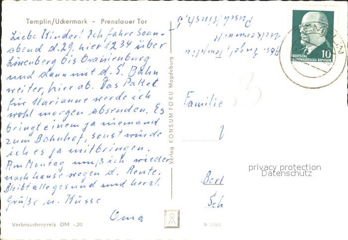 72136552 alte Postkarte Templin Uckermark Prenzlauer Tor postalisch gelaufen Erhaltung siehe scans KatCode: 11110012073572