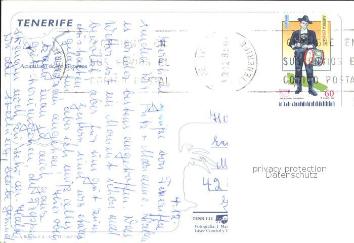 old postcard Tenerife Acantilado de los Gigantes postalisch gelaufen Erhaltung siehe scans