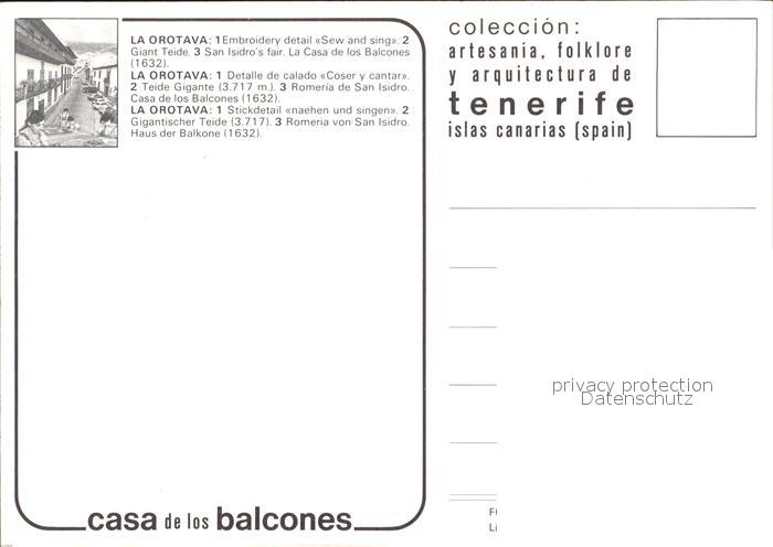 Tenerife Casa de los Balcones Artesania postalisch nicht gelaufen Erhaltung siehe scans