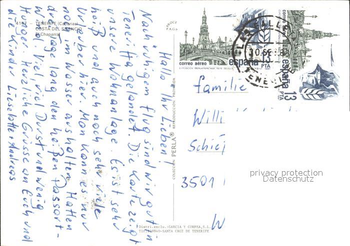 old postcard Tenerife Costa del Silencio El Chaparral postalisch gelaufen
