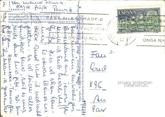 old postcard Tenerife Fliegeraufnahme Plataneras postalisch gelaufen Erhaltung siehe scans [LiesaD40]