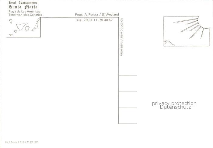 Tenerife Hotel Apartementos Santa Maria Playa de Las Americas postalisch nicht gelaufen Erhaltung siehe scans