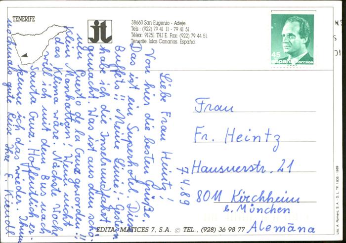 old postcard Tenerife Hotel Jardin Tropical postalisch gelaufen
