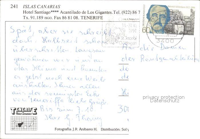 old postcard Tenerife Hotel Santiago Acantilado de Los Gigantes postalisch gelaufen Erhaltung siehe scans
