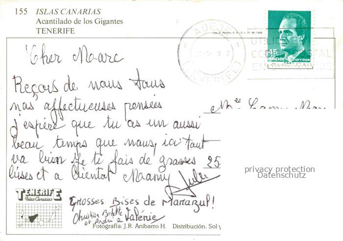 74034287 old postcard Tenerife Islas Canarias Spanien ES Acantilado de los Gigantes Panorama Tennisanlage postalisch gelaufen Erhaltung siehe scans [FriedD77] KatCode: 11510
