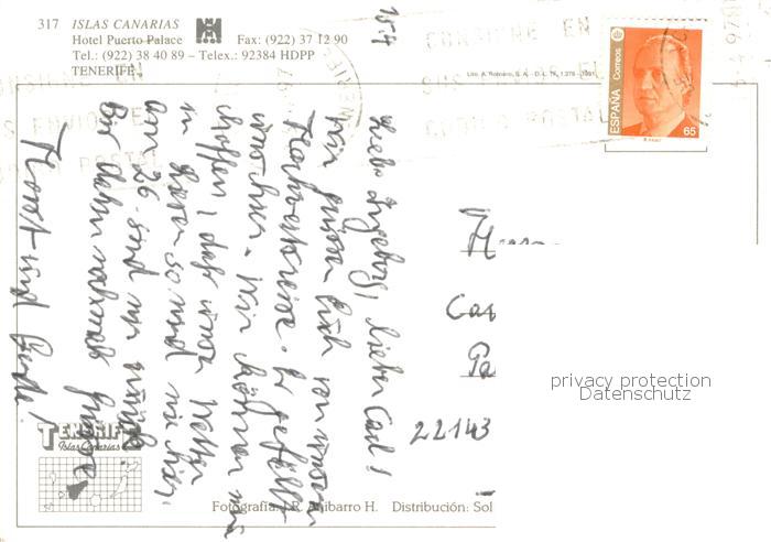 old postcard Tenerife Islas Canarias Spanien ES Hotel Puerto Palace Pool Panorama postalisch gelaufen Erhaltung siehe scans [WerneD78]