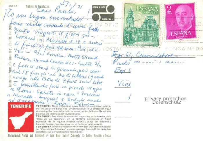 74005820 old postcard Tenerife Islas Canarias Spanien ES Innenhof der Vasa de los Balcones Strand Kuestenpanorama postalisch gelaufen Erhaltung siehe scans [FriedD77] KatCode: 11510