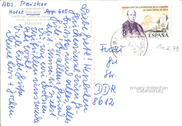 old postcard Tenerife Klimaparadies Oceano postalisch gelaufen Erhaltung siehe scans