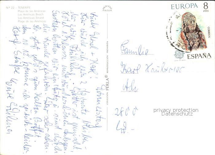 old postcard Tenerife Las Americas Playa postalisch gelaufen Erhaltung siehe scans [KathaD79]