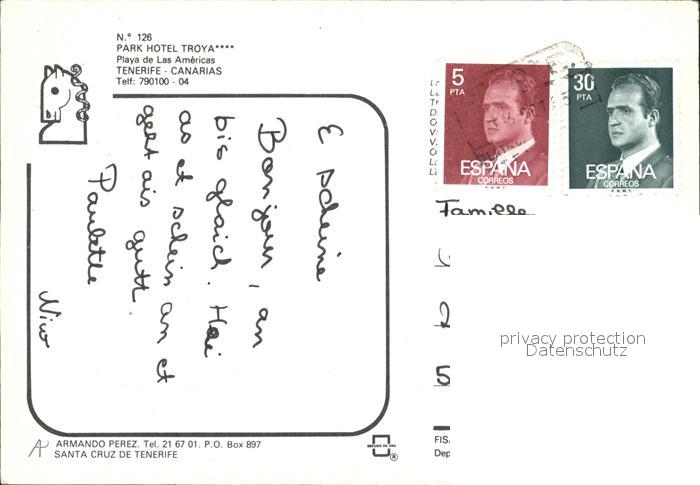 old postcard Tenerife Park Hotel Troya postalisch gelaufen Erhaltung siehe scans