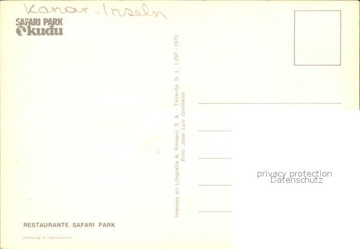 Tenerife Safari Park Kundu Restaurant postalisch nicht gelaufen Erhaltung siehe scans