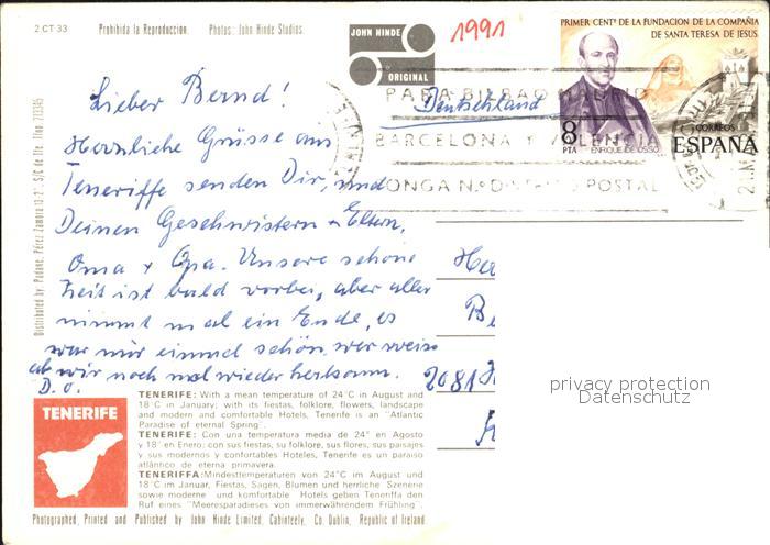 old postcard Tenerife Strassenhaendler Teilansicht Hafen Nachtaufnahme postalisch gelaufen Erhaltung siehe scans