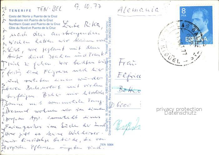 old postcard Tenerife Ten Bell Puerto de la Cruz postalisch gelaufen Erhaltung siehe scans