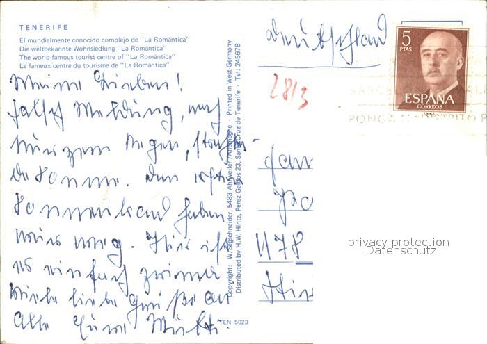 old postcard Tenerife Wohnsiedlung La Romantica postalisch gelaufen Erhaltung siehe scans