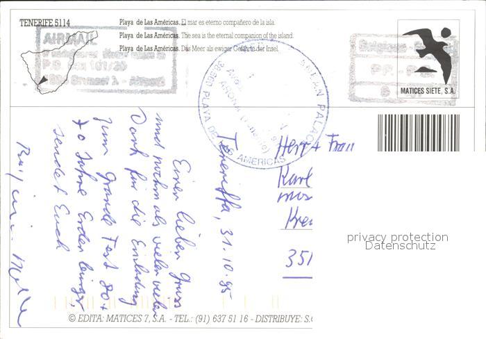 old postcard Teneriffa Playa Las Americas postalisch gelaufen Erhaltung siehe scans