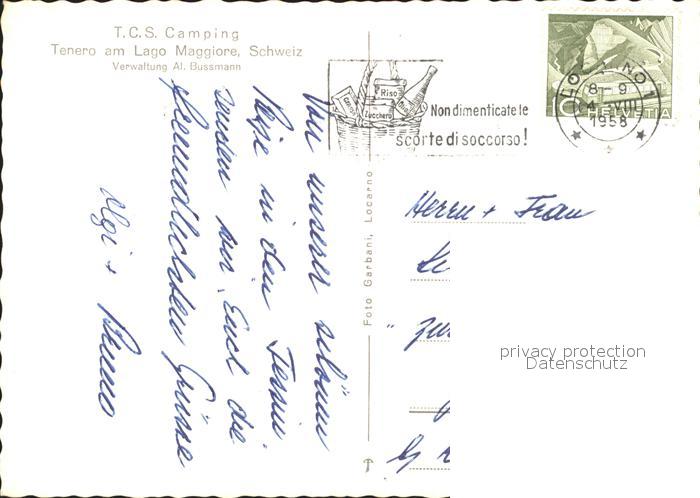 11652806 alte Postkarte Tenero TCS Camping am Lago Maggiore postalisch gelaufen KatCode: 11470210655016