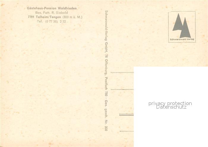73664782 Tengen Gaestehaus Pension Waldfrieden postalisch nicht gelaufen Erhaltung siehe scans [WerneD78] KatCode: 11110008335080