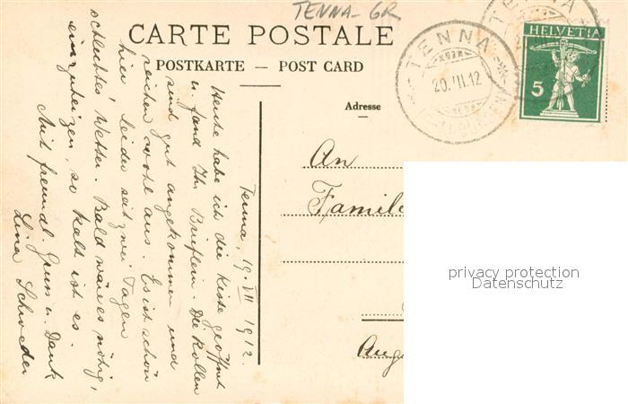13736427 alte Postkarte Tenna GR Panorama im Safiental mit Kirche postalisch gelaufen Erhaltung siehe scans [WerneD78] KatCode: 11470100355530