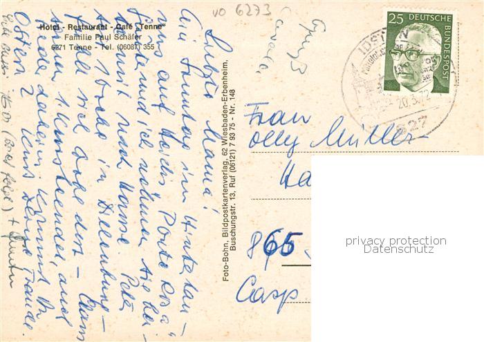 73863422 Tenne Steinfischbach Hotel Restaurant Cafe Tenne Fachwerkhaus Natur postalisch gelaufen Erhaltung siehe scans [FriedD77] alte Postkarte Frie Katcode 11110006439016