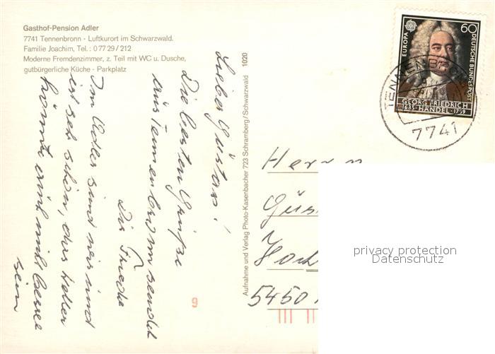 73608966 alte Postkarte Tennenbronn Gasthof Pension Adler Gastraeume Panorama postalisch gelaufen Erhaltung siehe scans [WerneD78] KatCode: 11110008325053