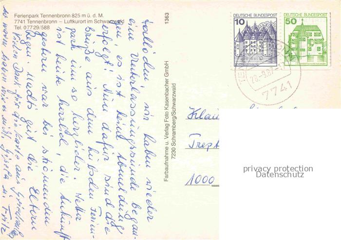 74025456 Tennenbronn Schramberg BW Ferienpark postalisch gelaufen Erhaltung siehe scans [FriedD77] alte Postkarte Frie Katcode 11110008325053