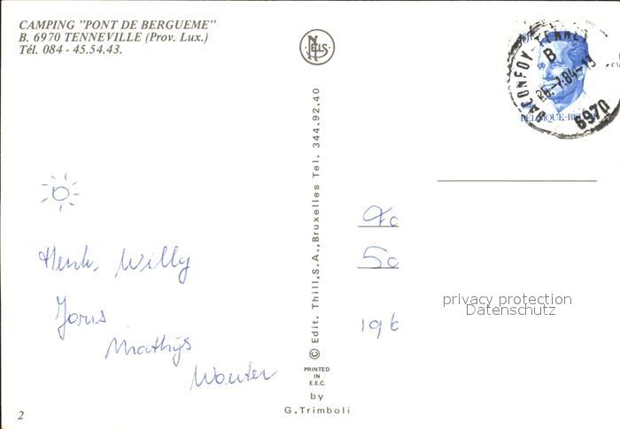 72254244 carte postale Tenneville Camping Pont de Bergueme postalisch gelaufen Erhaltung siehe scans KatCode: 11070083009579