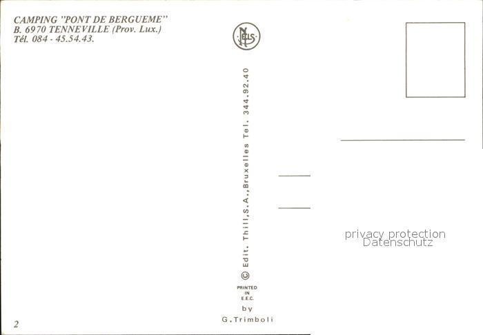 72469410 Tenneville Camping Pont de Bergueme postalisch nicht gelaufen Erhaltung siehe scans KatCode: 11070083009579