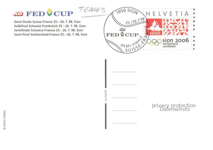 74041195 alte Postkarte Tennis– Fed Cup Suisse France postalisch gelaufen Erhaltung siehe scans [SanaeD93] KatCode: 22520000001100