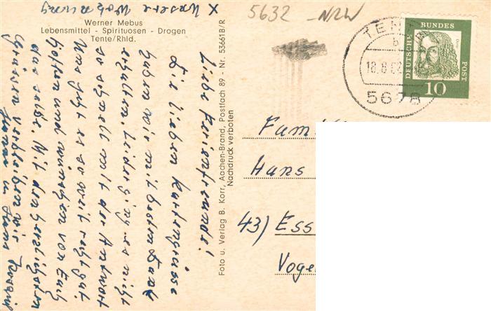 73959507 alte Postkarte Tente Wermelskirchen NRW Kaufhaus Mebus Kirchen Im Rosenacker postalisch gelaufen Erhaltung siehe scans [FriedD77] KatCode: 11110005378032
