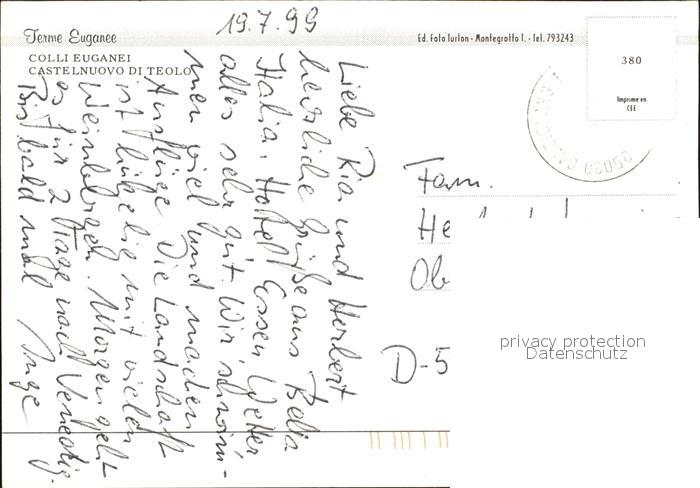 old postcard Teolo Fliegeraufnahme Castello Colli Euganei postalisch gelaufen Erhaltung siehe scans