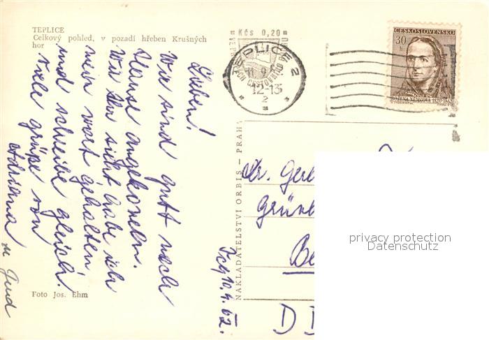 old postcard Teplice Celkovy pohled v pozadi hreben Krusnych hor postalisch gelaufen Erhaltung siehe scans [FriedD77]